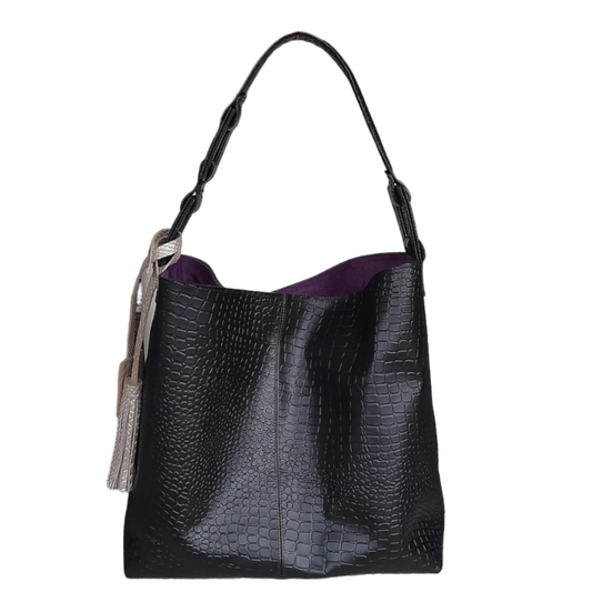 Bolso en cuero para mujer Fernanda reptil negro