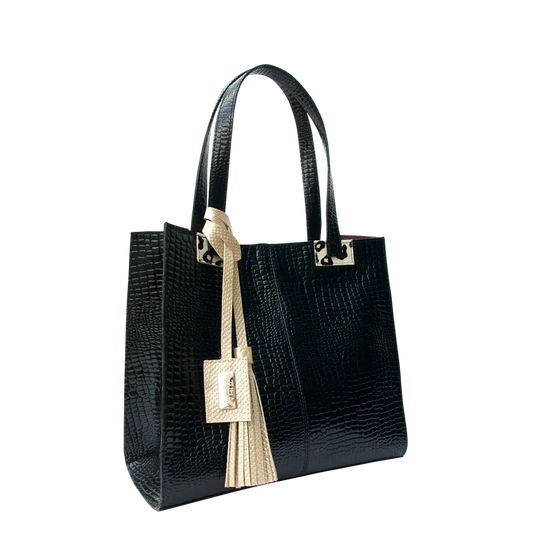 Bella Reptile Black Leather Women's Bag