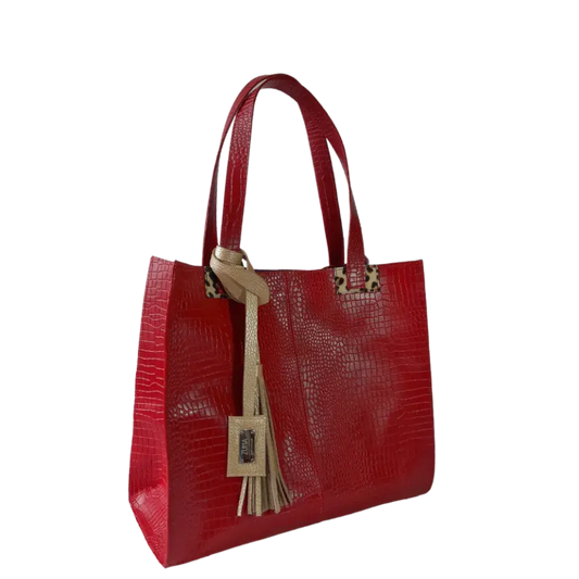 Sara women's leather bag, red reptile